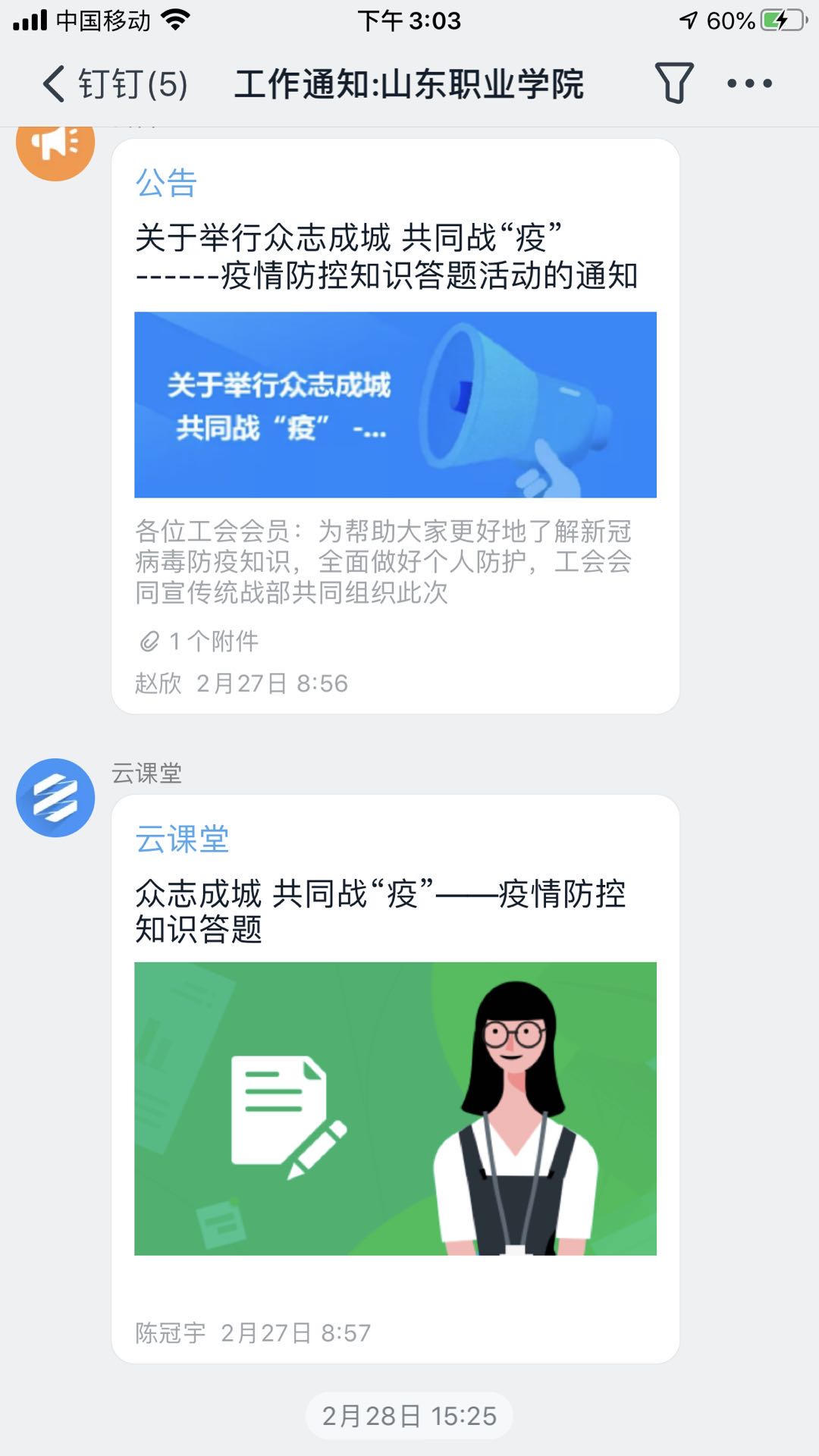 為進一步扎實做好學院新冠肺炎疫情防控工作,引導全體教職工學習防疫知識、提高防疫意識、加強自我防護、消除恐慌心理,2月27日至3月2日,工會聯合宣傳統戰部創新學習模式,首次通過釘釘工作平臺開展了疫情防控知識線上答題活動。