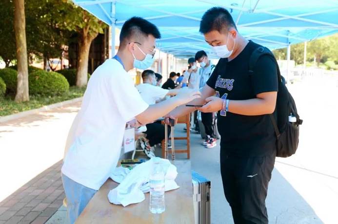 在北門,返校學生經過身份核驗、出示電子健康通行碼、體溫測量等程序進入校園,到報到處報到,學生們個個精神飽滿,校園里處處展現著生機與活力。