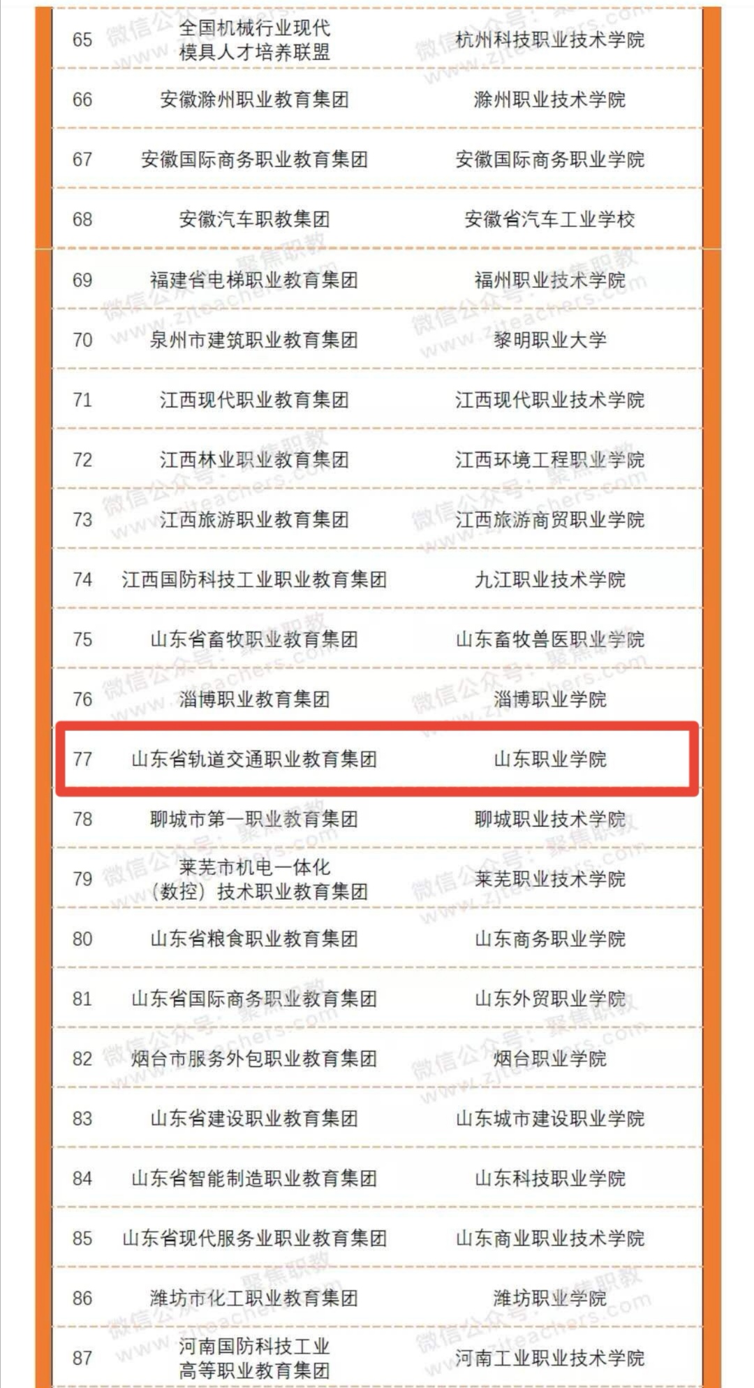 9月9日,教育部公示第一批擬入圍全國示范性職業教育集團(聯盟)培育單位名單,由我校牽頭組建的山東省軌道交通職教集團成功入選。