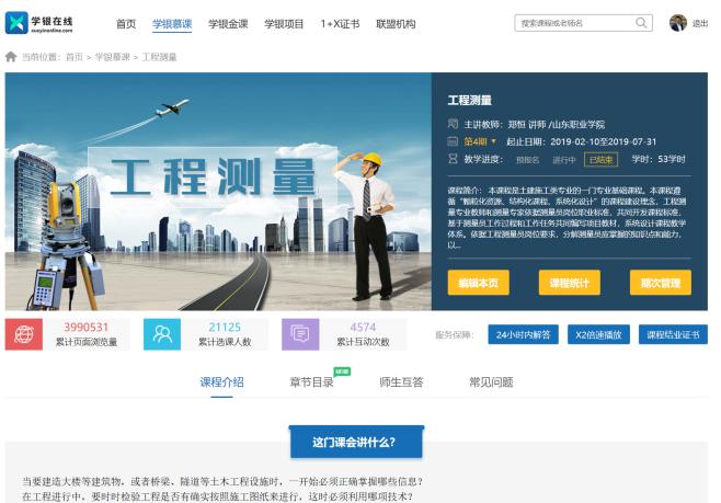 《工程測量》課程由教學團隊(鄭恒、劉紅霞、李偉、柴振波、邱玉等人)歷經三年多時間建設完成,2017年,課程完成初步建設并上線運行,開始面對學生及社會學習者開課;2018年,課程團隊不斷制作更新課程內容,獲批山東省精品資源共享課;2019年,經過多輪線上運行,課程團隊運用大數據分析等手段,查短板、補不足,重點更新了微視頻等信息化資源,經過遴選,列入山東省報送評審國家精品在線開放課程的38門本科、高職課程大名單;2020年被評定為國家精品在線開放課程。