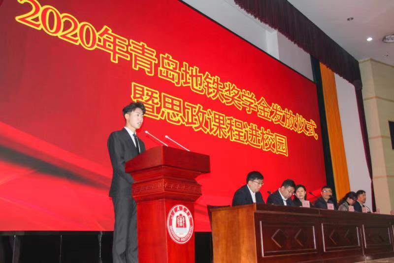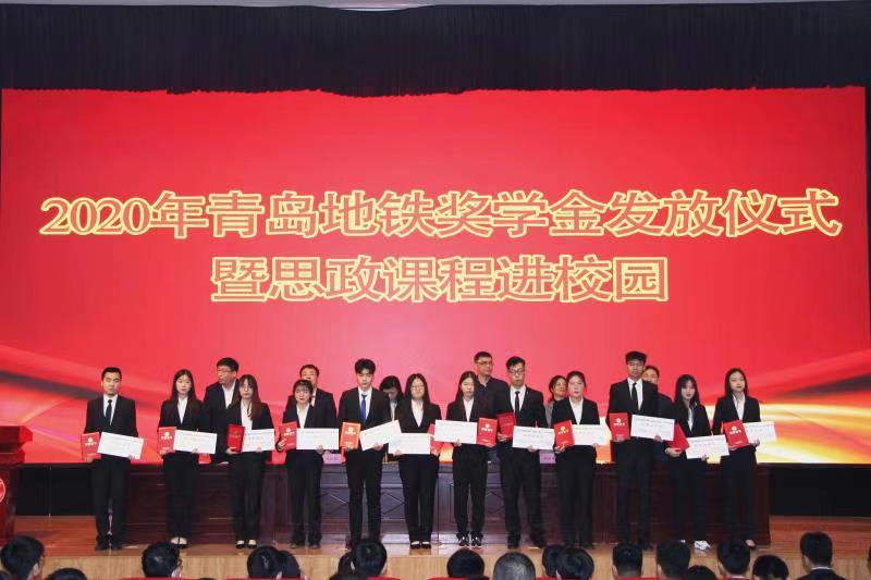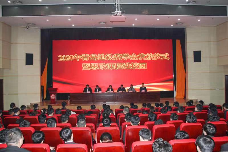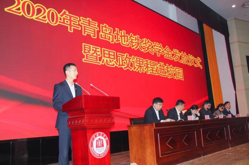 11月13日上午,我校2020年度青島地鐵獎學金頒發儀式暨思政課程進校園活動在圖書行政樓西報告廳舉行。青島地鐵集團黨群工作部部長李昱、青島地鐵運營分公司副總經理遲勝超、學校黨委副書記徐冬出席活動并講話。本次活動由學生工作處處長王偉主持,2018、2019級青島地鐵全體學生參加。