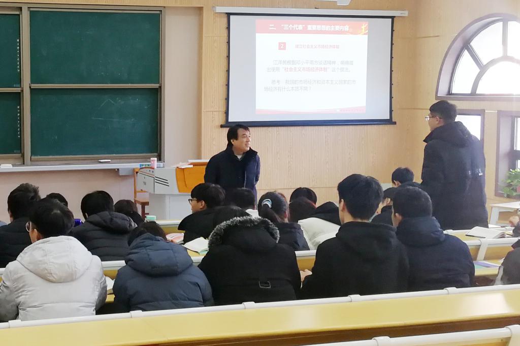 為深入貫徹全國全省高校思想政治工作會議精神,及時了解和掌握我校思政課堂教學情況,12月8日上午,學校黨委書記高磊深入思政課堂隨堂聽課。宣傳統戰部部長杜樹元,馬克思主義學院院長楊慧陪同參加聽課活動。