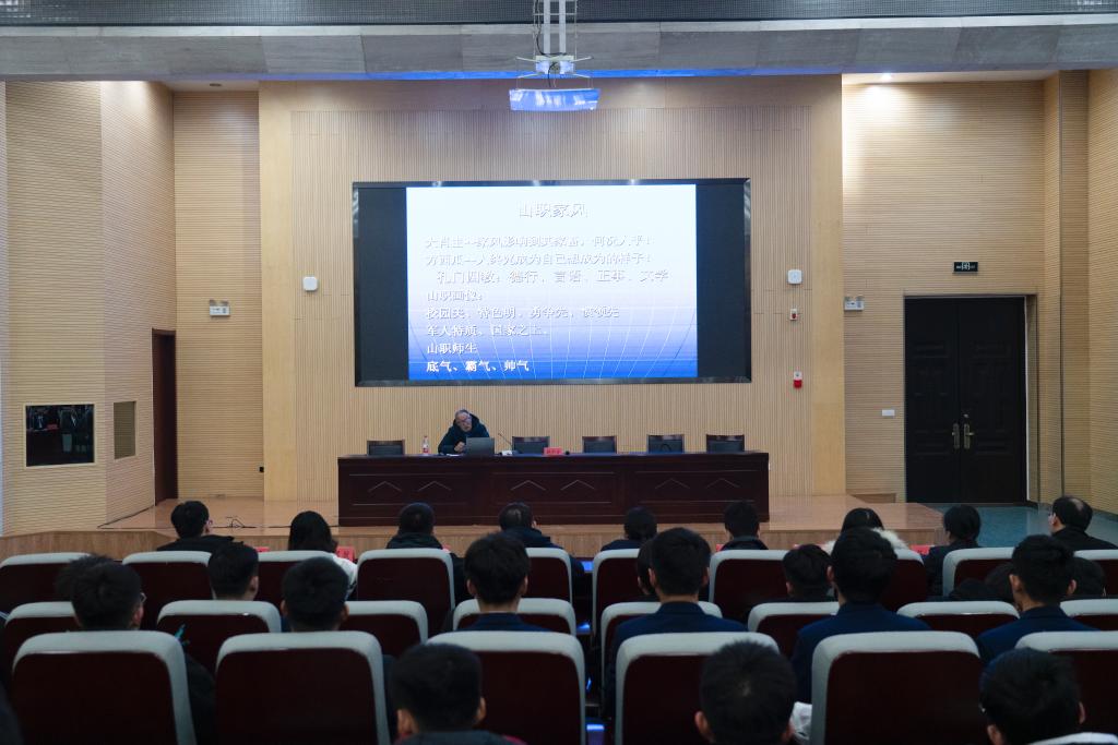 最后,祝介安用“寧靜思省”“儉以養德”“明志致遠”“認真嚴謹”等幾個詞語,寄語同學們以實際行動傳承“山職家風”。