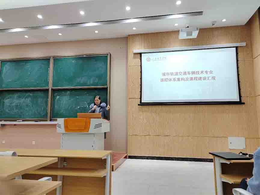 城市軌道學院黨總支副書記張風琴以城市軌道交通車輛技術專業為例,圍繞該專業崗位能力與知識體系一體化進行課程體系重構,就課程及教材開發的經驗做法與大家做了分享。