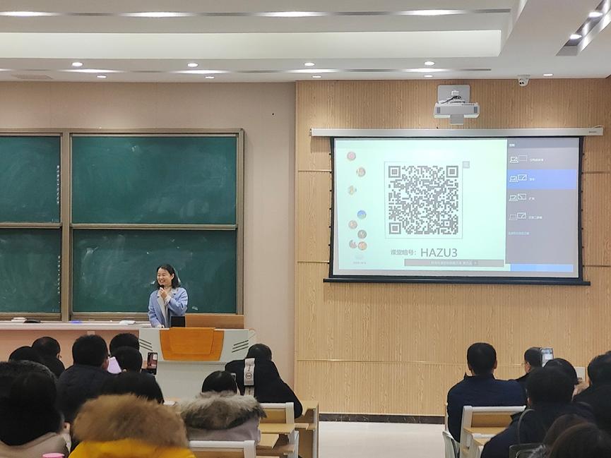 新一代信息技術產業學院教師郭娟結合自己工作實際向大家分享雨課堂使用的經驗,詳細介紹了如何利用雨課堂進行課前推送、課中授課和布置課后作業等。天競公司駐校工程師王賓就智慧教室的基礎功能、直播功能等做了說明。