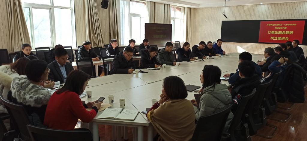 講座結束后,雙方舉行了訂單生聯合培養校企座談會,對人才培養中存在的問題進行了溝通和交流。雙方一致表示要進一步深化校企合作,落實落細立德樹人根本任務,在更高起點上為學生創造更高質量的發展平臺,為濟南地鐵輸送更多德技雙馨的高質量人才。