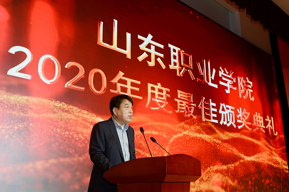 黨委書記高磊代表學校黨委向受表彰的單位和個人表示祝賀,他強調,他們的工作業績當得起這一榮譽,值得我們每一個人尊敬和學習。高磊指出,剛剛閉幕的2020年,是極不平凡的一年。這一年,在以習近平同志為核心的黨中央的堅強領導下,全國人民眾志成城,疫情防控取得重大成果,全校師生團結一心,在省內高校率先復學,教學計劃順利完成。這一年,部省共建職業教育創新發展高地“全面起勢”,學校啟動轉設升本工作,積極籌建山東職業技術大學。這一年,學校事業發展得到各級領導的關心支持,省委書記劉家義、教育部職成教司司長陳子季、教育廳鄧云鋒廳長先后來校調研指導。這一年,全面加強黨的領導,黨旗在學校改革發展的各個領域高高飄揚。這一年,“十三五”完美收官,學校事業發展取得長足進步。啟動了完全學分制改革、“書院制”學生管理模式改革,重組了教學科研和管理機構,改善基本辦學條件。
