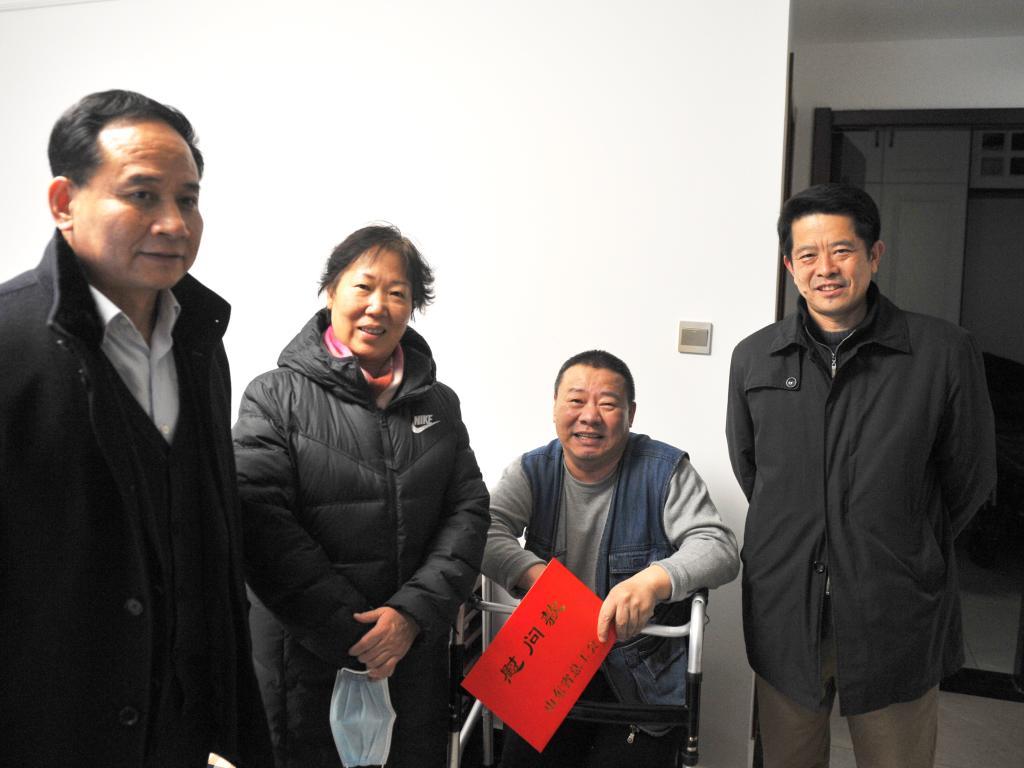 1月19日,山東省總工會副主席魏麗,在省教育工會主席宋志明的陪同下,來我校走訪慰問困難職工。院長秦河、黨委副書記徐冬陪同走訪,學校工會負責人參加走訪。