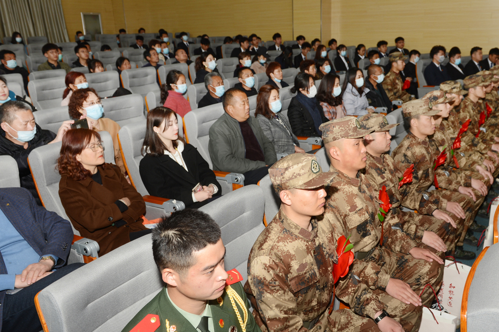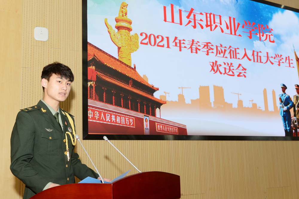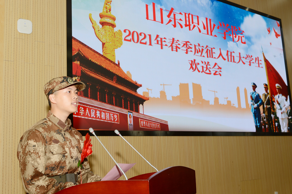 退伍學生靳啟水代表退伍老兵分享了自己從軍的收獲,對新入伍學生提出了幾點建議。新入伍學生賈東千代表20名新入伍學生發言,感謝父母的養育、學校的培養、老師的教育,表達了建功軍營、獻身國防的堅定決心。