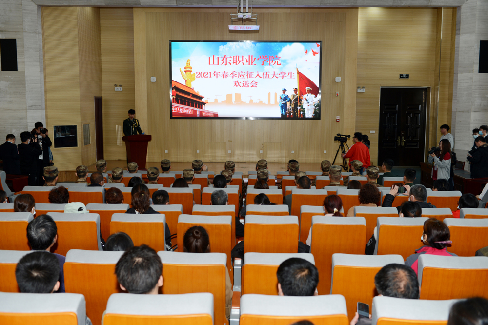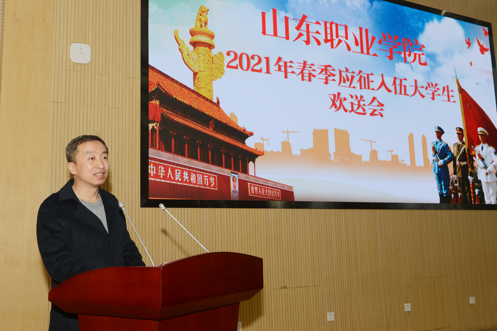 3月14日上午,我校在圖書行政樓東報告廳舉行2021年春季應征入伍大學生歡送會。副院長郭鵬出席并講話。