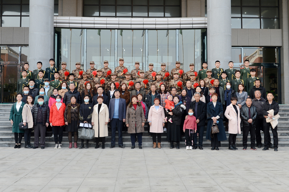 歡送會在“人民軍隊忠于黨”的旋律中結束。與會領導和新入伍學生、家長及復退學生在圖書行政樓北廣場合影留念。