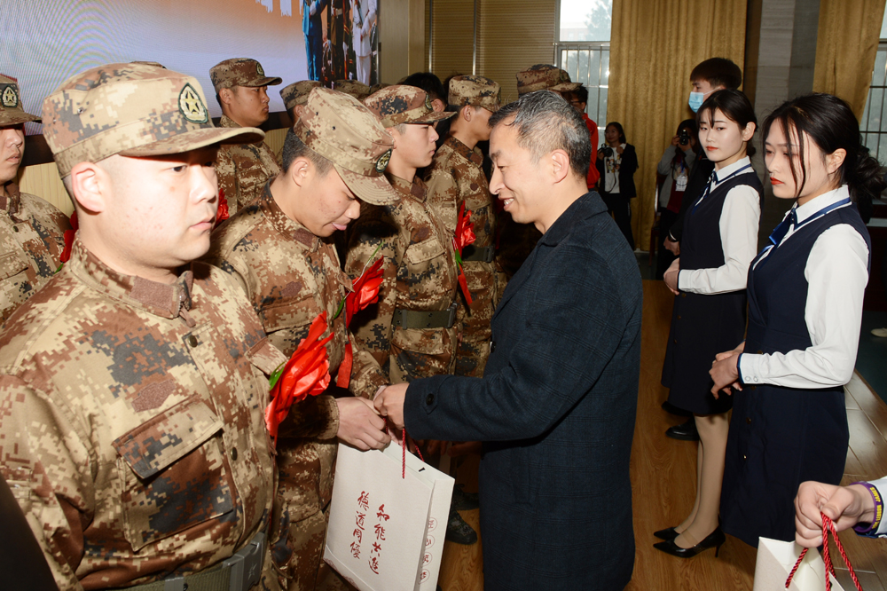 歡送會上,郭鵬代表學校對新入伍的同學表示熱烈祝賀,他勉勵即將步入軍營的同學:一要牢記初心使命,提高政治素質,努力成為一名政治合格的新時代軍人;二要忠于軍人職守,苦練軍事技能,努力成為一名本領過硬的新時代軍人;三要嚴守軍隊紀律,安心部隊生活,努力爭做“優秀士兵”。把山職人艱苦奮斗、自強不息的精神帶到部隊去,讓山職精神在軍營閃光,為母校爭光添彩。