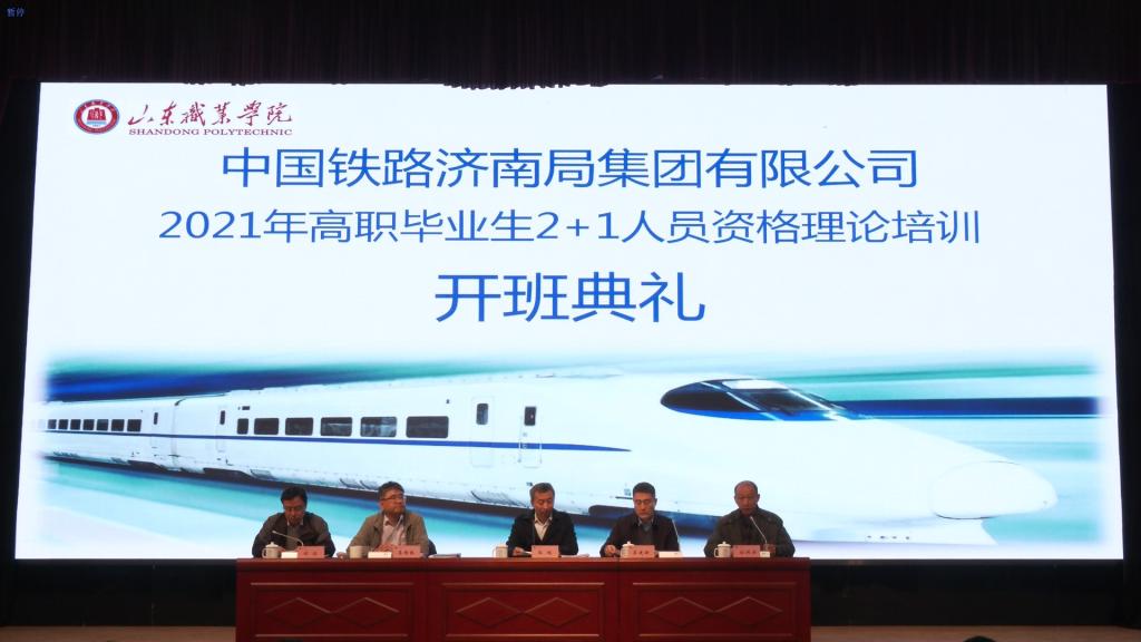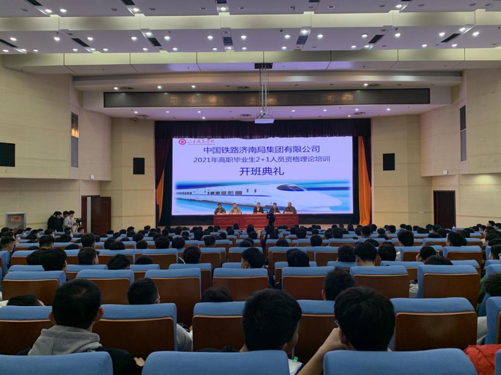 3月15日,中國鐵路濟南局集團有限公司2021年高職畢業生“2+1”人員資格理論培訓開班典禮在我校圖書行政樓東、西報告廳舉行。濟南局集團公司職培部副處長李國振、機務部副處長李建新、車輛部副處長劉波,學校副院長郭鵬出席開班典禮。