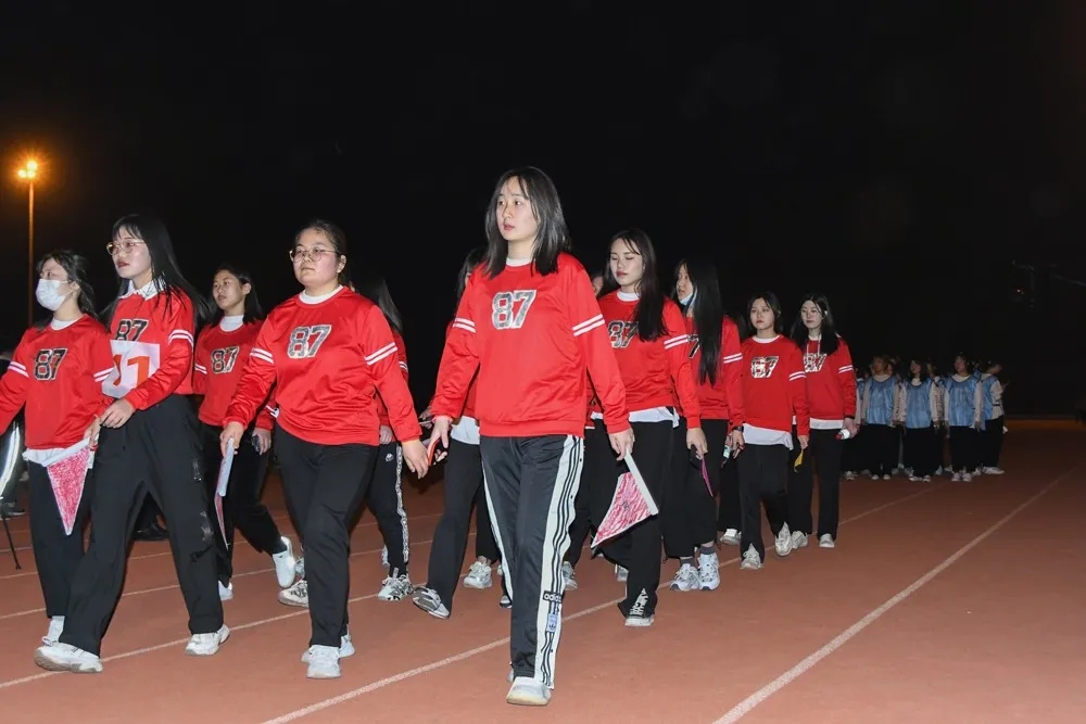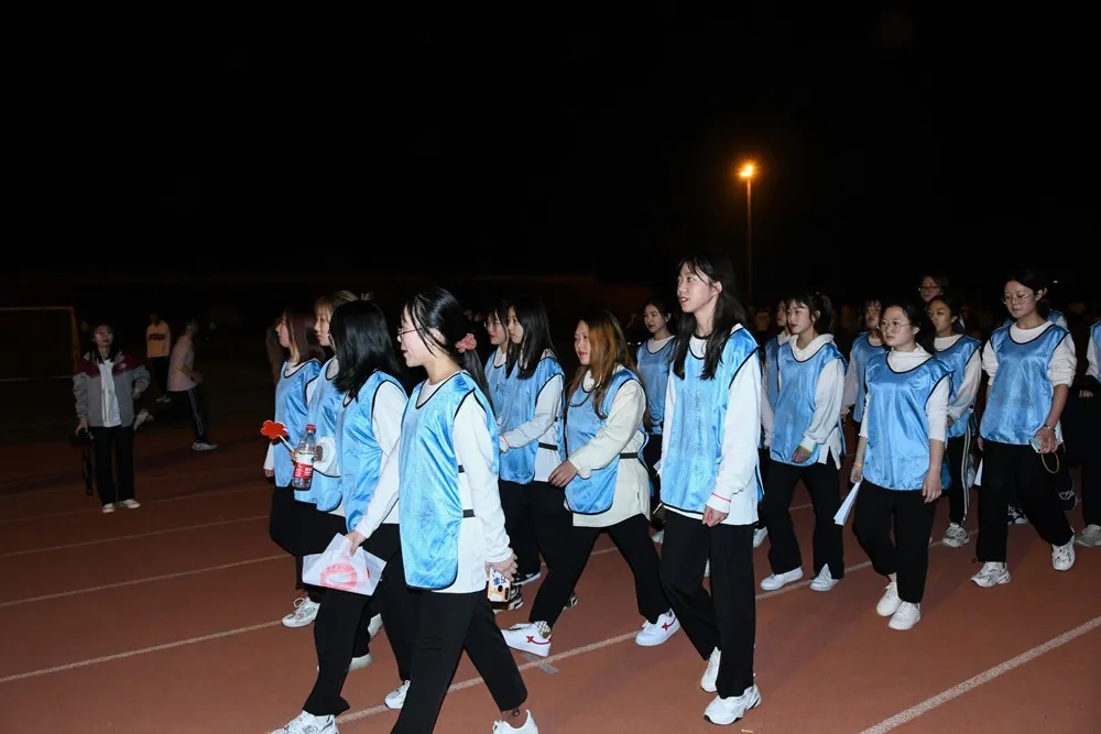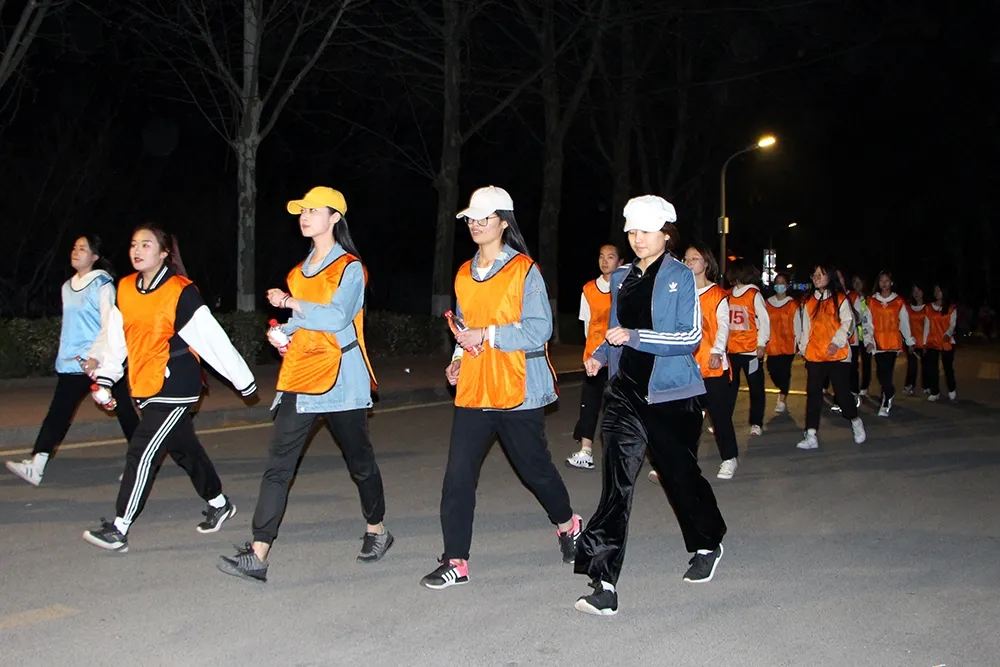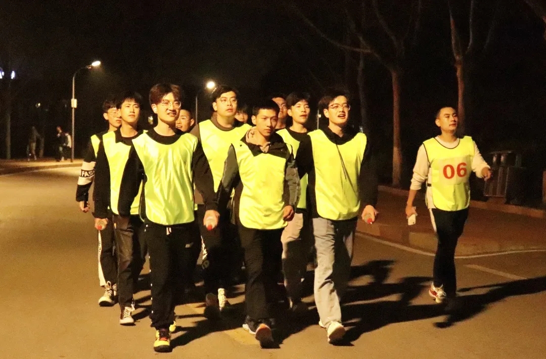 配著激昂澎湃的音樂,帶著發光發亮的熒光手環,各支參賽隊伍你追我趕,參賽隊員齊心協力、相互鼓勵,處處傳遞著友情、釋放著熱情。浩浩蕩蕩的隊伍圍繞著校園感受每一處的風景,為夜間校園注入了新活力。在路燈的映襯下,閃閃發光的熒光棒和身穿五彩馬甲的選手們成為了校園里一道亮麗的風景線。