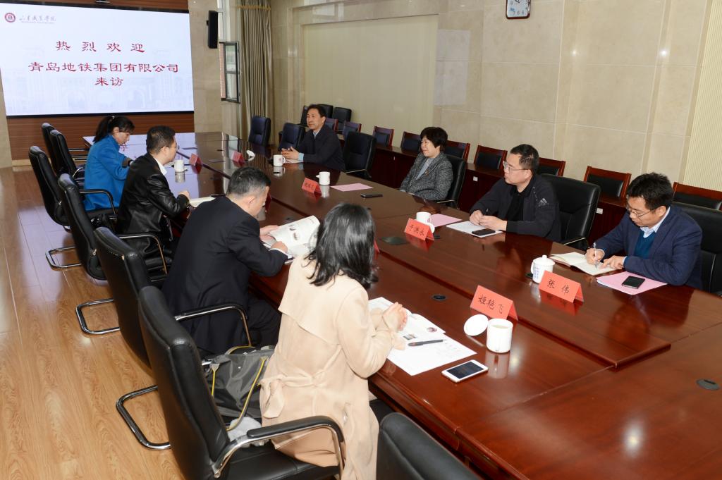 4月23日,青島地鐵集團運營分公司總經理助理趙宏宇一行4人來校交流訪問,副院長祝瑞花出席會見。