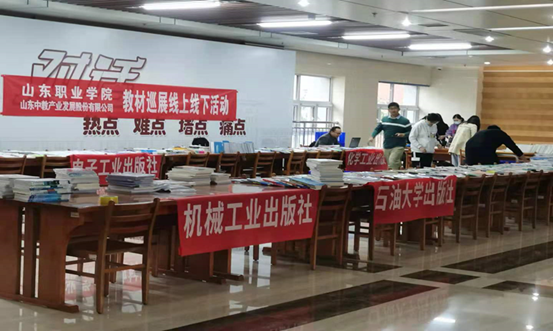 本次活動由我校和山東中教產業發展股份有限公司共同舉辦,依托“教材巡展網上行”服務平臺同時開展線上線下巡展活動。參加本次線下巡展的出版社有科學出版社、清華大學出版社等10余家。現場重點展示了近三年出版的各類獲獎教材、規劃教材和精品教材3380多種。到場老師220多人,免費申請教材樣書510多種。當天無法到現場選書的老師,也可通過“教材巡展網上行”平臺申請獲取教材樣書。線上參展出版社達164家,其中贈送教材樣書的出版社43家,可贈送教材樣書品種170170種。