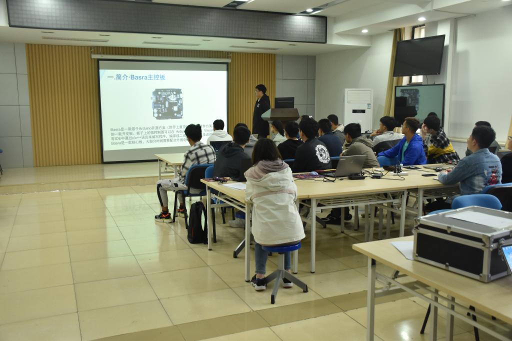 為提高學生的學習興趣,培養創新意識和工程實踐能力,4月24、25日,我校和北京機器時代科技有限公司聯合舉辦了“探索者”機器人創新設計與調試訓練營。來自智能制造眾創空間、鐵道創客空間、城軌創客空間、南山創意工坊的30余名創客精英參加了培訓。
