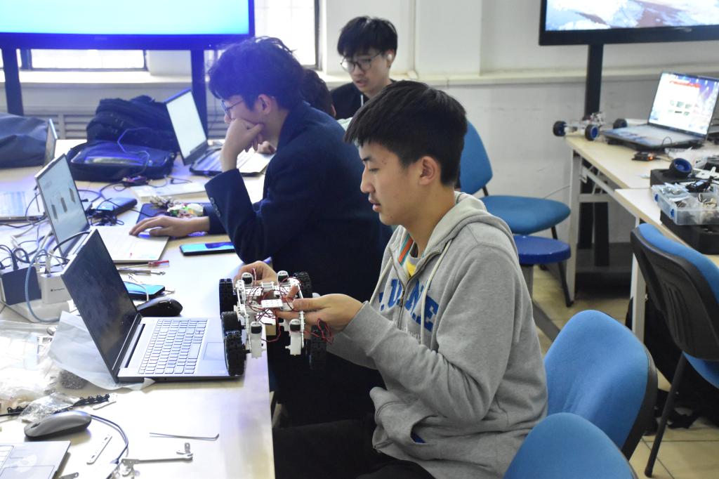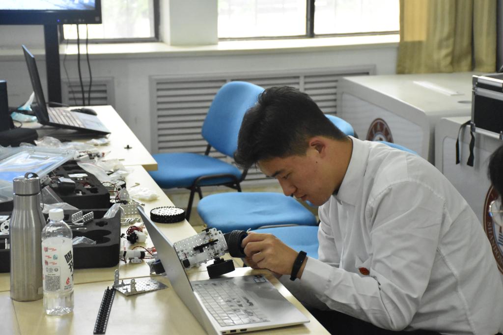 訓練營邀請到了企業工程師進行現場講解,主要講授了中國高校智能機器人大賽基本規則、“探索者”機器人基本結構、傳感器原理、控制器編程方法等基本內容,并結合藍牙遙控履帶排爆車、可循跡的懸掛式底盤、可自動避障的四輪驅動小車、基于NRF的遙控小車、基于灰度的顏色識別分揀機械臂等實際案例,寓教于樂,學做一體,調動學生的學習興趣,提高了同學們在機器人組裝、編程及調試方面的工程實踐能力。