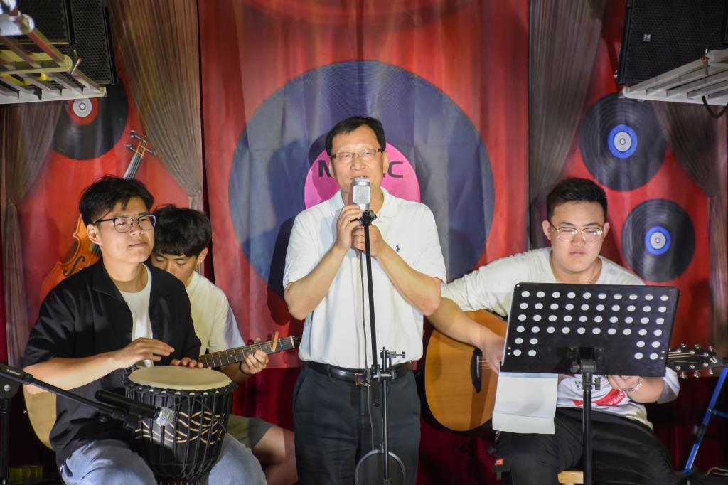 氣氛微醺,郭培謙的《那天晚上》,將現場氣氛推到高潮,他風趣的說:“坐著火車唱著歌,此刻的你,離馬仔只差一頓火鍋!”相信在以后的路上,同學們會時常感悟郭院長“那天晚上”教會我們的瀟灑和坦蕩!
