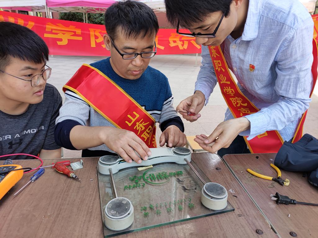 活動現場,志愿服務團隊運用專業知識,為師生維修了熱水壺、電子秤、打印機、電飯鍋、電暖器等,得到了師生們的一致好評。同時,老師們現場教學,與同學們共同查找小家電損壞原因,耐心細致地向同學們傳授其中所涉及的專業知識,同學們認真傾聽、用心記錄,受益匪淺。