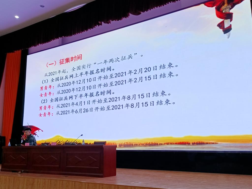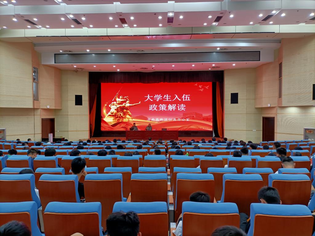 根據國家對大學生入伍的新政策,鼓勵大學生積極參軍入伍,為軍隊輸送高素質人才。5月28日下午,我校在西報告廳舉行了2021年秋季征兵工作宣講會,濟南市高新區武裝部征兵辦公室參謀李冰、王墨源、學生工作處有關人員、部分有意愿應征入伍的學生代表參加宣講會。
