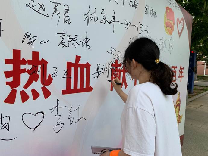 成人無碼在線視頻區:獻血結束后,同學們紛紛在簽名墻上簽名留言。