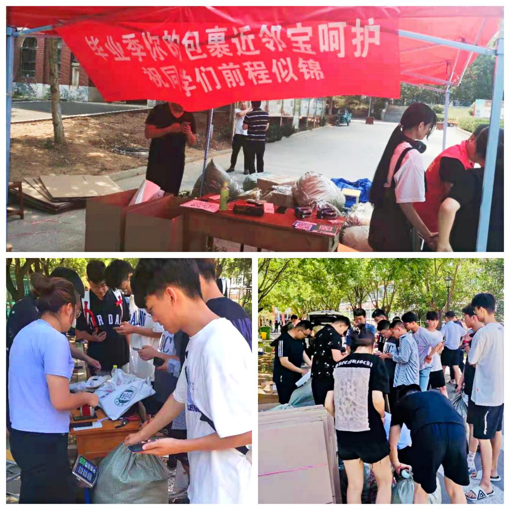 快遞站移步生活區,縮短學生負重距離。學團黨支部聯系順豐、EMS及“校園近鄰寶”等快遞服務單位,于6月18日-27日在學生宿舍區設立多個快遞郵寄臨時點,縮短了學生與校園快遞派送站的距離,為畢業生和放假離校學生郵寄行李提供了方便,切實幫助學生解決實際困難和需求。