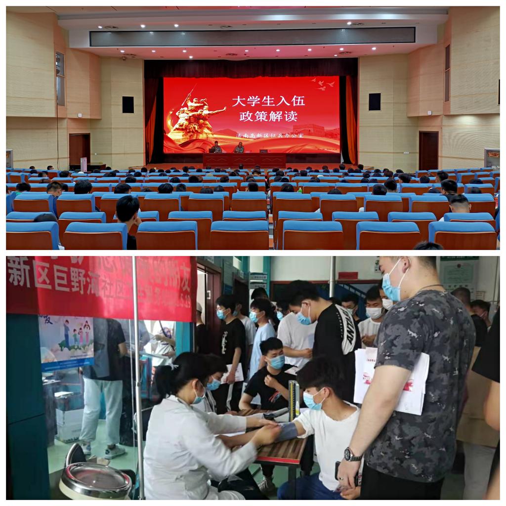 多方位服務,助力青年“從軍夢”。邀請濟南市高新區武裝部征兵辦公室工作人員進校召開宣講會,并進行現場答疑解惑,細心講解政策,消除同學心中疑慮,助力有志青年,攜筆從戎建軍功,讓青春綻放鐵血榮光。幫助志愿應征入伍服兵役學生聯系車輛、對接醫院,陪同學生前往醫院做役前身體檢查,保障往返途中安全,及時應對體檢過程中的異常情況。