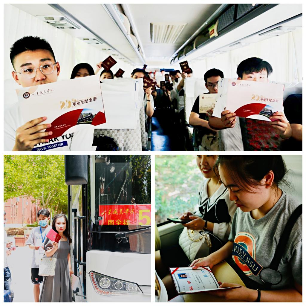 開通畢業生直通車,助力畢業生暖心啟程。學團黨支部聯合濟南公交公司于6月19日開通“畢業生離校直通車”,2021屆畢業生們帶著滿滿的行囊和母校殷切的期望,乘坐直通車前往車站,踏上人生新征程。