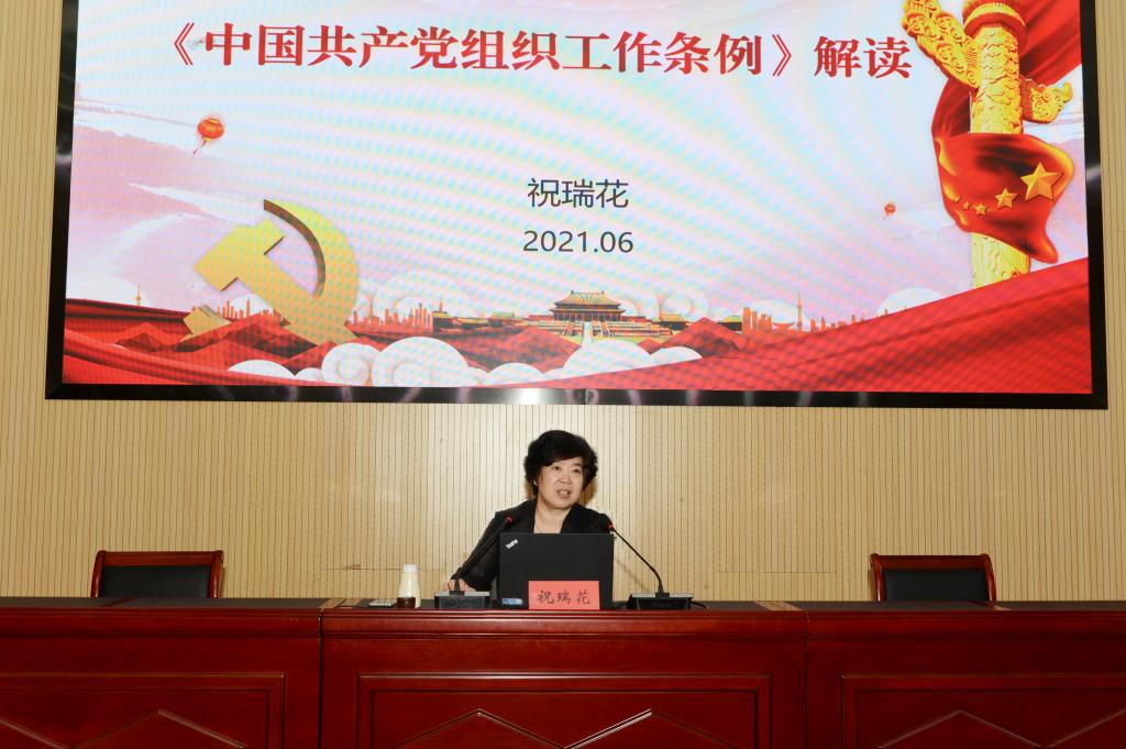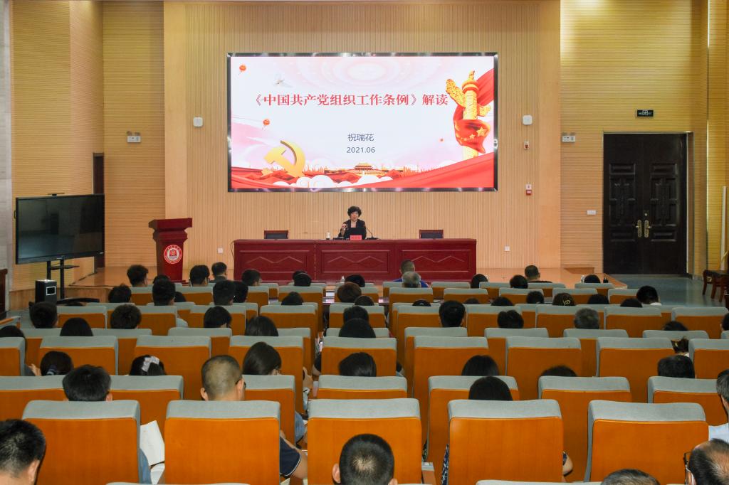 6月22日下午,副院長祝瑞花在圖書行政樓東報告廳以《<中國共產黨組織工作條例>解讀》為題講授專題黨課。有關職能處室、二級學院、書院師生代表200余人參加。
