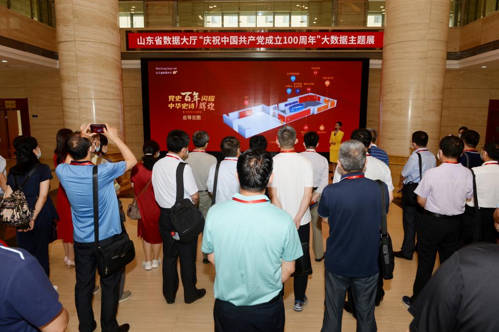 在山東省檔案館,集中參觀了“黨史百年閃耀,中華史詩輝煌”大型展覽。展覽運用數字化等現代科技手段打造各類沉浸式、智能化體驗平臺,通過珍貴史料、短視頻、影片、實景實時展示等方式,呈現中國共產黨成立百年的輝煌歷程。在講解人員的引領下,大家還實地體驗了大數據分析、視頻采集、VR模擬、實時監控等強大功能。