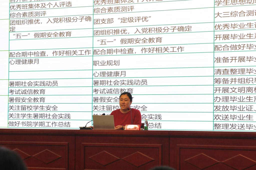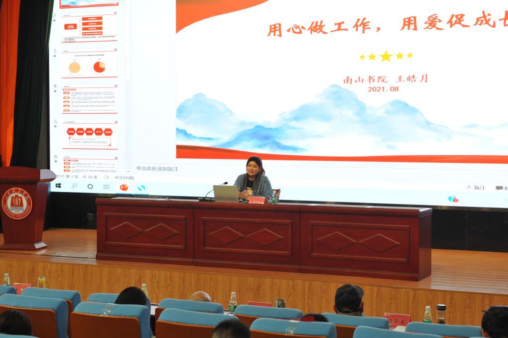 桐林書院薛高芳、東嶺書院武文玉、南山書院王皓月分別以《輔導員工作中涉及的法律問題》《輔導員主要工作流程》《用心做工作 用愛促成長》為題,與輔導員們進行了經驗交流,分享各自工作感悟。