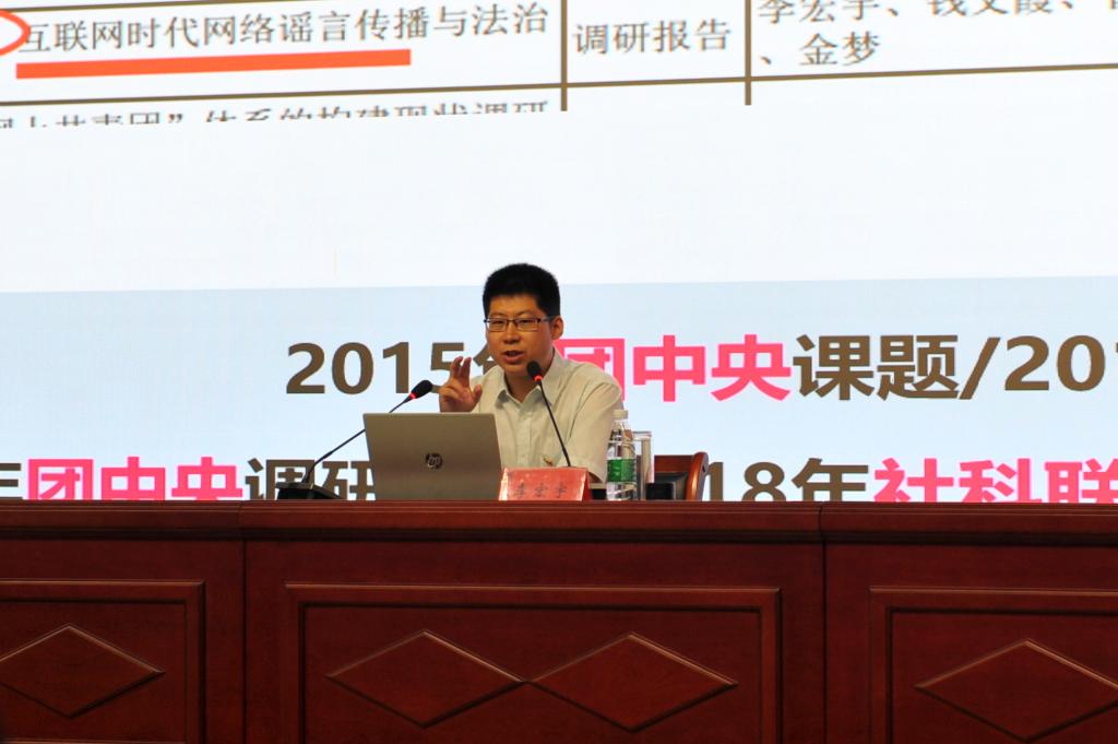 齊魯工業大學左殿升以《干事業做學問--大學生思想政治工作品牌化建設的實踐與思考》為題作了報告。他介紹了山東省輔導員名師工作室建設、教育部思政精品建設、教育部思政精品文庫建設情況,重點結合齊魯工業大學省級網絡名師工作室、“鴻雁”大學生標兵團等建設經驗,就輔導員名師工作室建設的頂層設計、隊伍建設、品牌創建、項目申報等方面進行了分享。