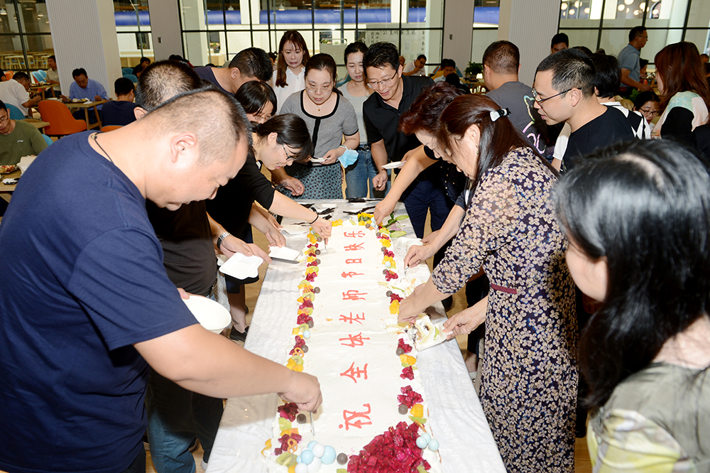 在這特殊的日子里,學校精心制作了“祝全體老師節日快樂”的長方形大蛋糕,以表達對老師們的衷心謝意和節日祝福。