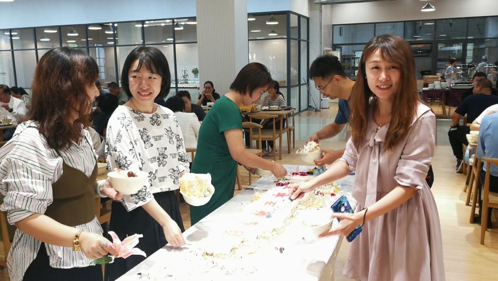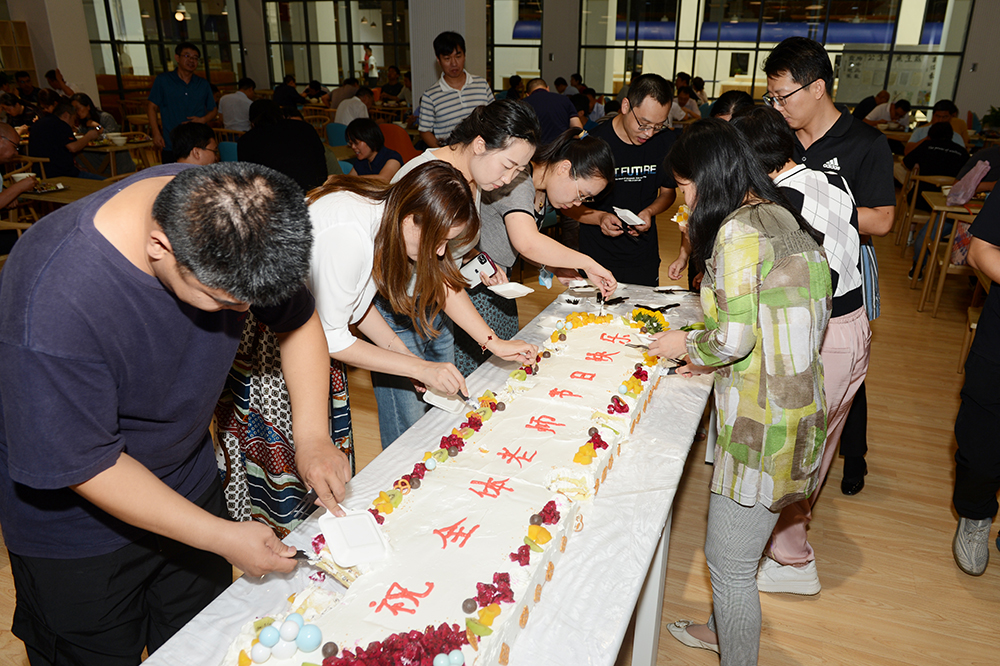 全國模范教師、齊魯最美教師艾菊蘭與班子成員一同為老師們切蛋糕。大家笑意盈盈地有序就餐,溫馨的節日氣氛縈繞著整個餐廳。許多老師紛紛表示,這份節日禮物不僅“甜”,更有“愛”,很溫馨,很有幸福感。