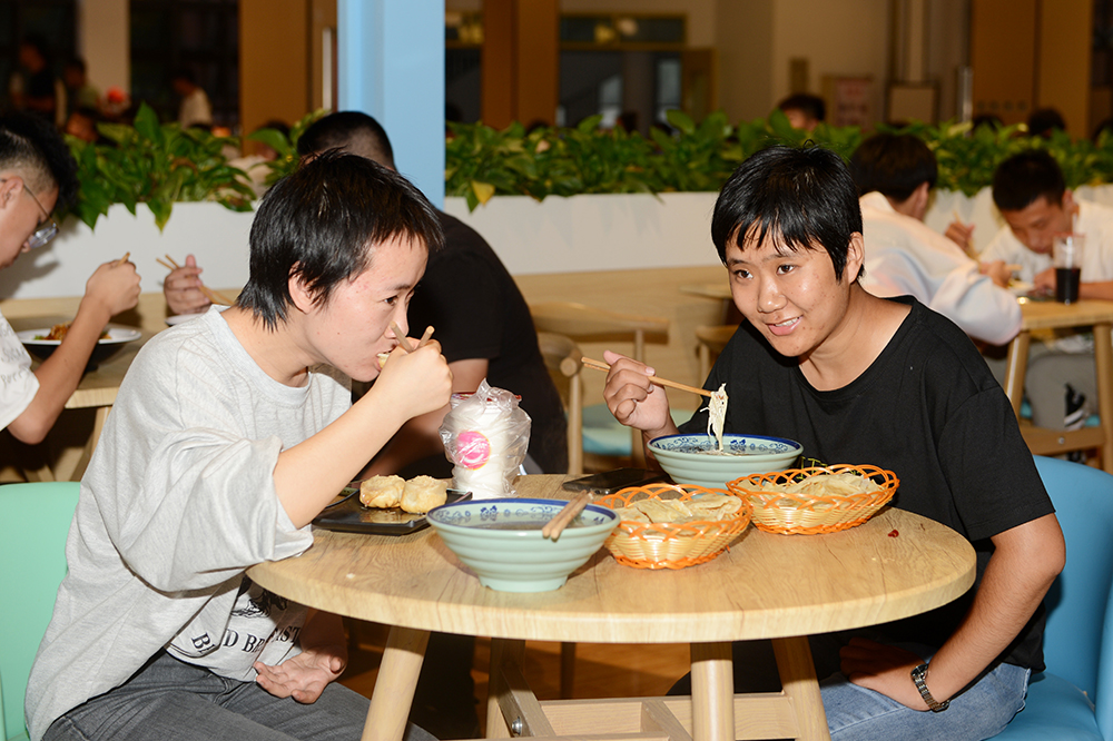 “上新”。為給學生提供更好的學習生活環境,今年暑假,學校投入、校企合作企業投入與社會資金投入相結合,對學生宿舍進行了升級改造,安裝了空調,對餐廳進行了重新裝修、功能改造。改造后的學生宿舍和餐廳煥然一新,宿舍硬件條件顯著提升,環境更加整潔溫馨。餐廳成為集餐飲、娛樂、休閑、學習于一體的多功能餐廳,學生的學習、生活條件有了大幅改善,學校辦學條件更加優化,有力提升人才培養質量。“學校餐廳是真的文雅,有種田園小苑的感覺,各種選擇很滿足,菜很豐盛,餐廳阿姨很熱情,有種家的感覺”,易安書院2021級城市軌道交通運營管理武興紅同學說。