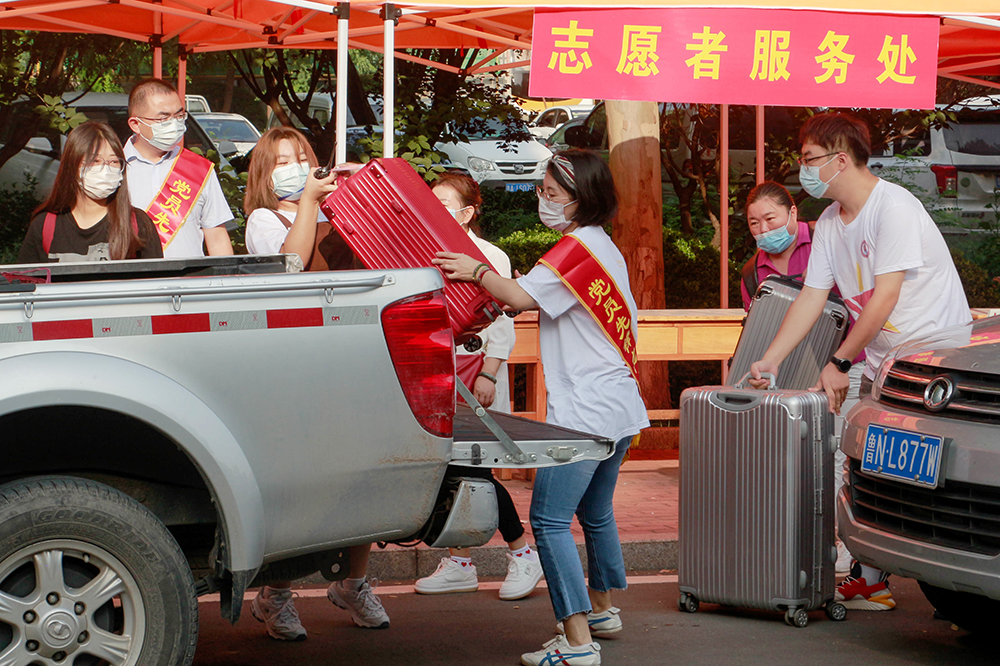 “擺渡車”。今年,學校安排多輛校園擺渡車,協助新生搬運行李,同學們“行李減負”后輕松到各自所在書院辦理相關手續,充分彰顯了人性化、親情化。來往不停的擺渡車,成了今年迎新工作靚麗的風景線。