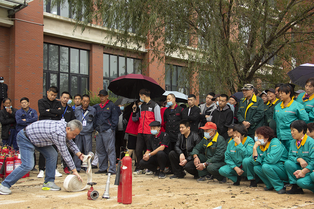 安全保衛處副處長劉禮寬結合具體案例,講解了針對電器起火、油鍋起火、排煙罩起火等初起火災的撲救方法,強調了緊急疏散逃生和火災報警注意事項,并介紹了滅火器和消火栓的使用步驟及運用技巧,在場人員認真聆聽、用心學習。然后,在工作人員的指揮下,全體服務外包人員分組進行了滅火器使用演練活動。