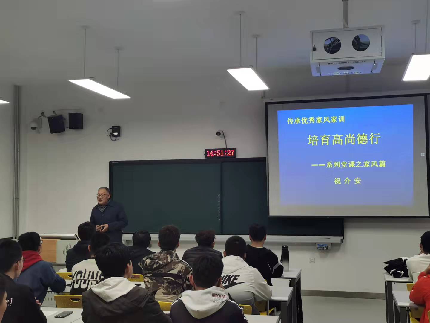 祝介安書記從《朱子家訓》《戒子篇》重點篇目講起,與學生們共同領會中國傳統文化“家風家訓”的內涵和精髓,要求廣大師生加強政策理論學習,嚴以修身,筑牢思想上的“總開關”,珍惜當前的幸福生活,積極踐行習近平總書記“注重家庭、注重家教、注重家風”的要求,多思考如何建設好自己的家風,講道德,守規矩,做良好家風建設的表率。