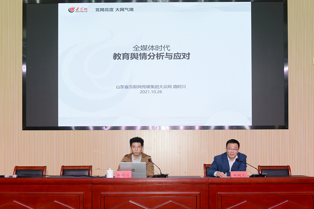 為提高我校教職工媒介素養,增強輿情判斷與研究能力,提升輿情應對與處置水平,10月26日,我校在東報告廳舉辦了輿情分析與應對培訓會。山東省互聯網傳媒集團大眾網?海報新聞教育頻道總監路時川應邀作了題為《全媒體時代教育輿情分析與應對》的輔導報告。培訓會由黨委宣傳部部長杜樹元主持。