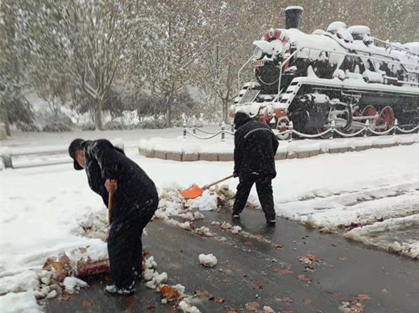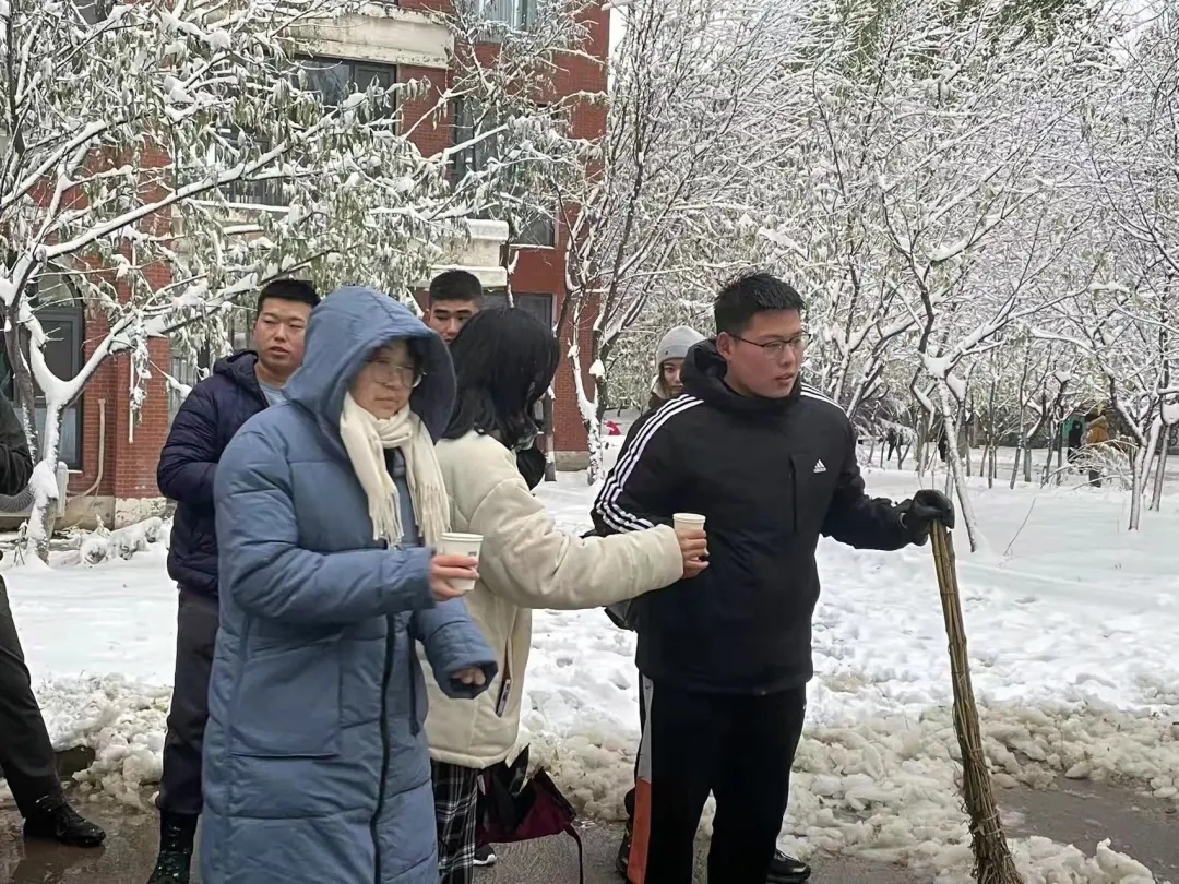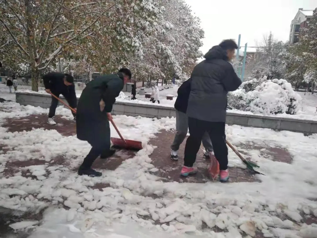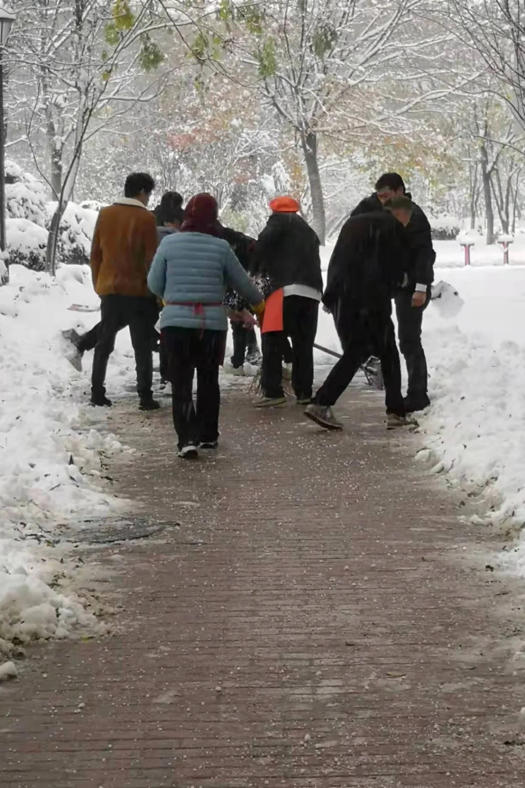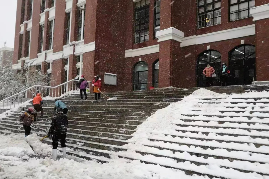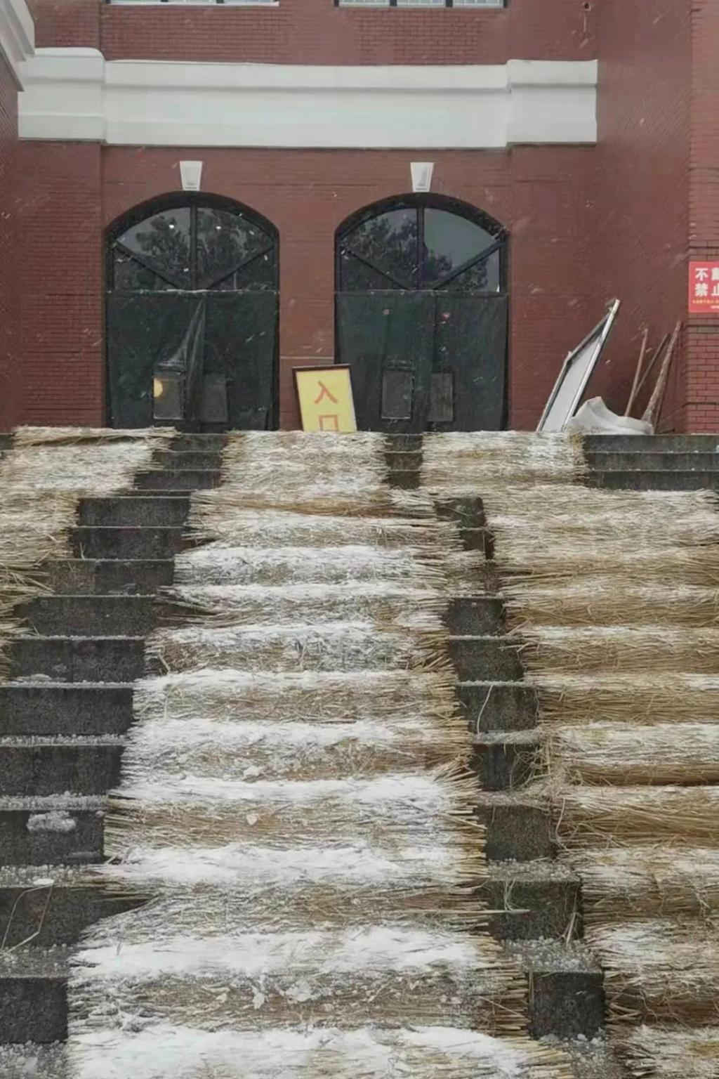 為確保師生的出行安全,大雪尚未停止,我校物業、安保、餐廳人員,已經開始清掃學校各主要馬路,打開主要人行通道,在教學樓入口處放置除滑地毯,在臺階上放置草笘子防滑。謝謝大家,你們辛苦了!