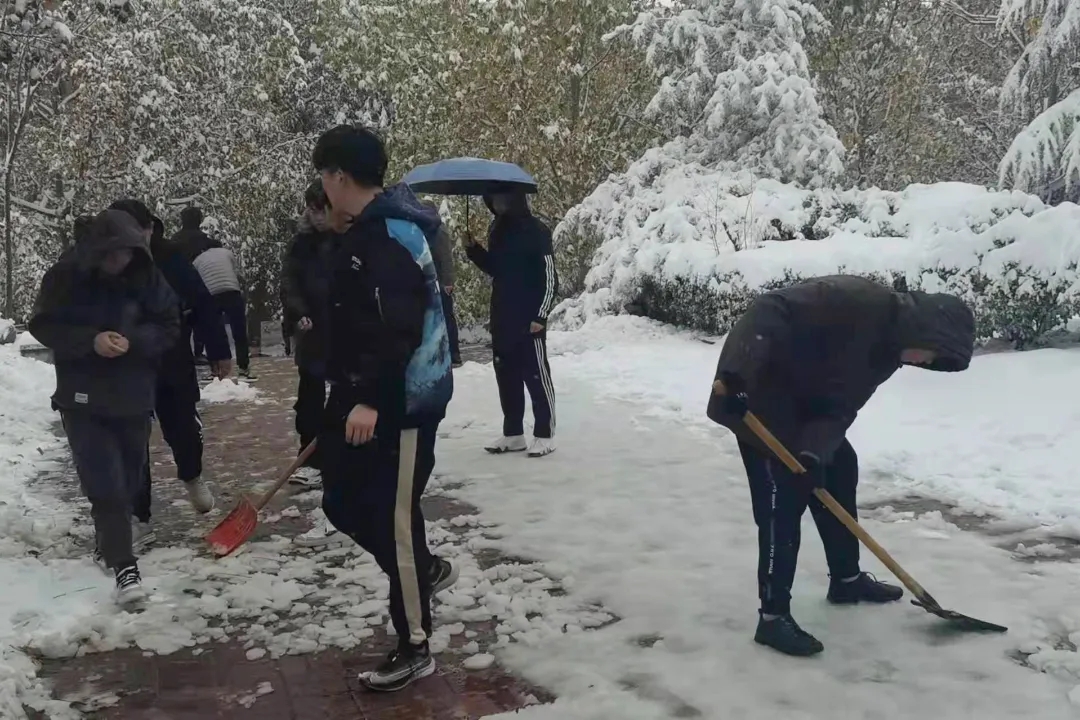 在這一片銀裝素裹的冰雪王國背后,始終有一群人默默守護我們的安全與溫暖。雪后的校園,不覺得冷,四處充滿暖意。
