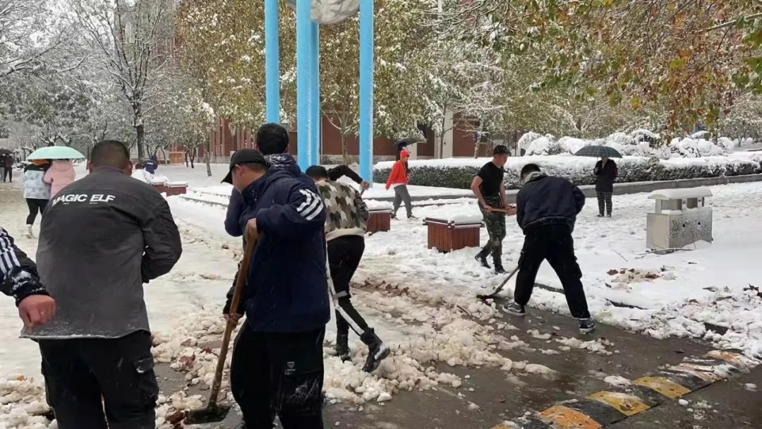 成人無碼在線視頻區:各書院學生也積極加入到大雪清理隊伍中來,清理積雪。看還有赤膊上陣的同學,同學們,你們辛苦了!
