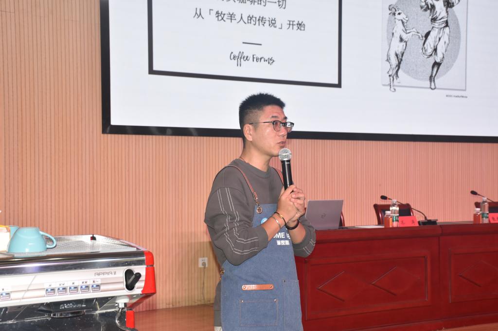 張教明是SCAE歐洲精品咖啡協會認證咖啡師,曾任澳大利亞賓達咖啡山東區技術總監、索亞技術培訓學校咖啡老師。張老師圖文并茂的介紹了咖啡的起源、產地、分類、加工方法,將聽眾帶入了咖啡的神奇世界。隨后逐一展示了來自不同產區的咖啡豆和各類器具,并進行了經典咖啡和手沖咖啡的現場制作演示和品鑒。
