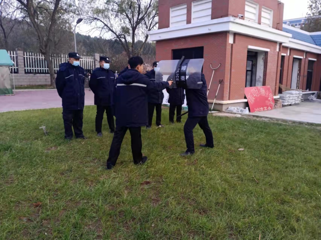 在防暴演練中設置了演練情境,扮演“暴徒”人員持械闖入學校,學校立即啟動應急預案,組織學生迅速躲避,保安隊員手持伸縮鋼叉、防暴棍、盾牌等裝備及時規范處置,將“暴徒”制服。隊員們戰術明確、真打實練,充分展示了安保隊員優良作風和良好技能。