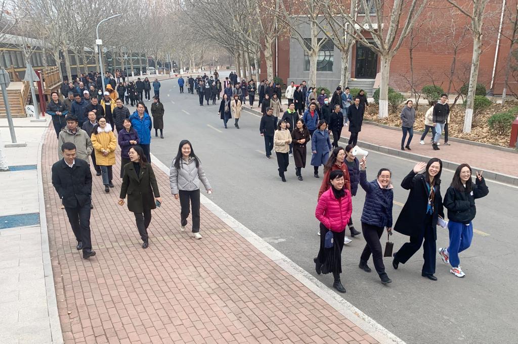 本次活動以校門口火車頭為起點,繞校園一周,全程約2公里。健步走隊伍浩浩蕩蕩,巍巍壯觀。一路上,大家邁著輕快的步伐,意氣風發地沿著指定路線大踏步前進。活動中,老師們結伴而行,呼吸著清新空氣,欣賞著校園冬季美景,每個人臉上都洋溢著喜悅的笑容,享受著健康運動帶來的快樂。