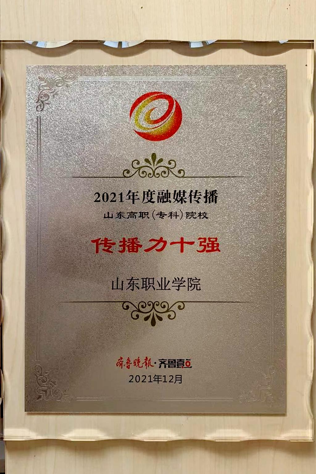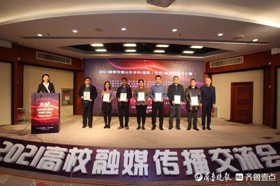 12月18日上午,齊魯晚報·齊魯壹點2021山東高校融媒傳播交流會暨第三屆“尋找山東最美大學校園”微視頻/攝影大賽頒獎典禮舉行。我校榮獲“2021融媒傳播-山東高職(專科)院校傳播力十強”和“2021融媒傳播-優秀引導力高校”兩項大獎。