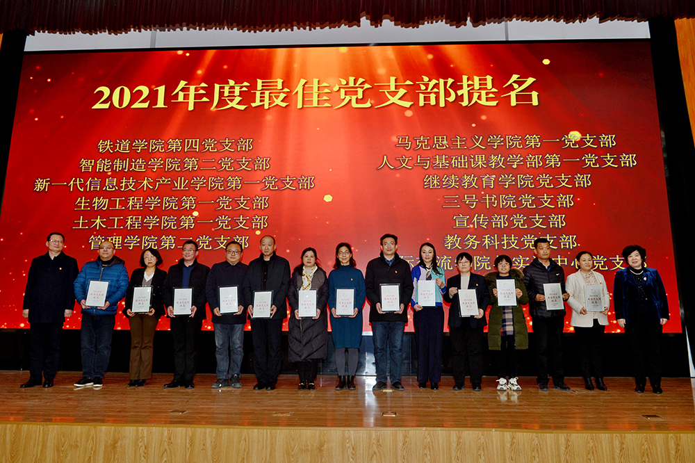 在年度最佳黨支部的推選中,14個年度最佳黨支部提名推薦單位推薦人逐一上臺陳述所推薦黨支部的推薦理由。陳述結束后,由學校黨委班子成員,各黨總支書記、支部書記,各直屬支部書記組成的評委專家組現場進行投票,現場統計票數,現場公布結果。城市軌道學院第二黨支部獲得2021年度最佳黨支部,鐵道學院第四黨支部、智能制造學院第二黨支部、新一代信息技術產業學院第一黨支部、生物工程學院第一黨支部、土木工程學院第一黨支部、管理學院第二黨支部、馬克思主義學院第一黨支部、人文與基礎課教學部第一黨支部、繼續教育學院黨支部、3號書院黨支部、宣傳部黨支部、教務科技黨支部、國際交流學院與實訓中心黨支部等13個支部獲得了年度最佳黨支部提名。