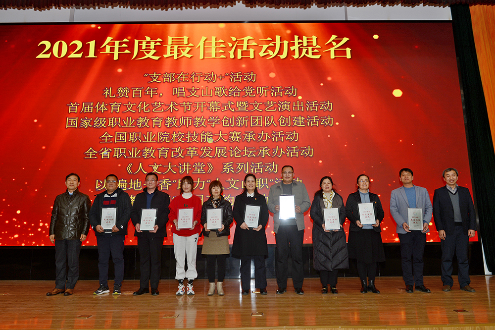 郭培謙在主持講話中指出,2021年,在學校黨委堅強領導下,我們秉持“為國家潛心培育合格人才,為企業量身打造現代工匠”的辦學宗旨,各項事業取得突破性進展,學校駛入了高質量高速發展的快車道。在事業改革發展大潮中,涌現出一批優秀黨支部,它們充分發揮戰斗堡壘作用,樹黨旗、亮黨徽,敢擔當、勇作為,為學校改革發展提供了堅強的組織保證。同時,“人文山職”建設卓有成效,校園活動豐富多彩,有力提升了學校美育度和社會影響力。