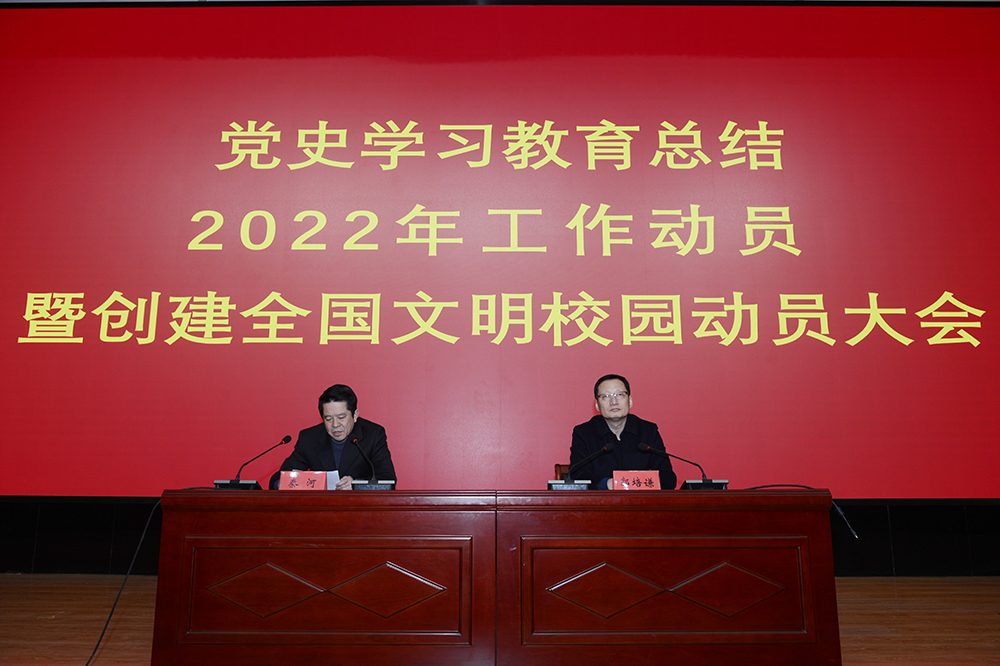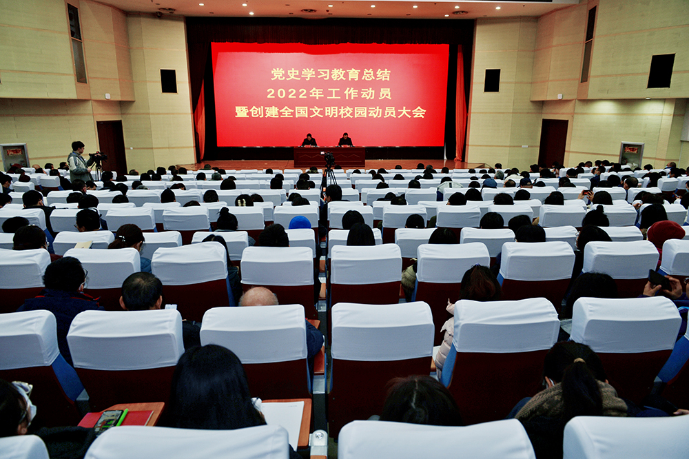 2月20日,我校在圖書行政樓西、東報告廳召開黨史學習教育總結、2022年工作動員暨創建全國文明校園動員大會,會議全面總結了我校黨史學習教育開展情況及工作成效,部署了2022年重點工作,對創建全國文明校園進行了工作動員。黨委書記高磊作總結和動員講話,院長秦河主持會議。全體教職工參加會議。